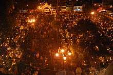 One important tradition is Day of the Dead, celebrated throughout the borough but San Andrés Mixquic’s is particularly well known, attracting thousands of visitors from Mexico and abroad.[2][3] The celebration generally lasts three days from October 31 to November 1 each day focusing on different groups, children, adults and saints. One local tradition related to the day is to hang a paper lantern often in the form of a star at the entrance to home as a way to greet the return of the souls of the dead.[3] The Fiestas del Santo Jubileo is a custom observed on different days in the communities of the borough. It consists of a mass and exhibition of the Host on the main altar of the church for 40 hours, surrounded by flowers, sawdust carpets, live music, dances and fireworks.[3] Carnival is important in San Francisco Tlaltenco and Santiago Zapotitlán, where dancers generally are chinelos and those in charro suits. These carnivals begin on the fourth Sunday of Lent. The tradition in San Francisco Tlaltenco goes back to the end of the 19th century.[3] A reenactment of Palm Sunday has been held each year at San Pedro Tláhuac for over eighty years, with the procession winding its way through eight different neighborhoods.[21] San Pedro Tláhuac is also the site of the Regional Fair of Tláhuac. It was first organized in 1956, with the goal so attracting tourism and encouraging youth to maintain traditions. It begins with a procession of the image of the patron saint, the Apostle Peter, in decorated trajinera boats in the chinampa areas of Lago de los Reyes Aztecas. Other events include the selection of a fair queen, conferences, cultural events, concerts, dances, fireworks and more, with proceeds going to the restoration of the San Pedro Apostal Church.[22] The Baile del Guajolote (Dance of the Turkey) is a traditional dance in the towns of Santiago Zapotitlán and San Pedro Tláhuac, which is performed at weddings, baptism, first communions and quinceañeras. It includes the gifting of a live turkey along with a large food basket from one family to another. Another important traditional dance, especially in Santiago Zapotitlan is the Dance of Moors and Christians also called the Danza de los Santiagueros (Dance of those of Saint James). The dance represents the battles between the Moors and Christians in which Saint James plays a central role.[3]