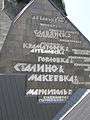 Wall with plates listing the dates of liberation of Donetsk Oblast cities