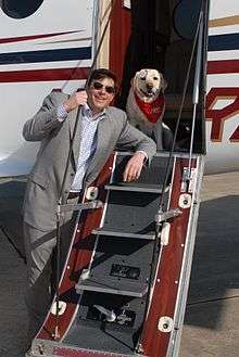 Todd Graves with his yellow lab, Raising Cane II, who is also the namesake of Graves' restaurant chain. | |