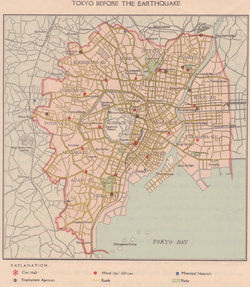 Tokyo City (東京市 Tōkyō-shi) was a municipality in Japan and part of Tokyo-fu which existed from 1 May 1889 until its merger with its prefecture on 1 July 1943.[1] The historical boundaries of Tokyo City are now occupied by the 23 Special Wards of Tokyo. The new merged government became what is now Tokyo, also known as the Tokyo Metropolis, or, ambiguously, Tokyo Prefecture.