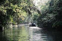 Tortuguero National Park is a National Park in the Limón Province of Costa Rica. It is situated within the Tortuguero Conservation Area of the northeastern part of the country.[1] Despite its remote location, it is the third-most visited park in Costa Rica, reached only by airplane or boat.[2] The park has a large variety of biological diversity due to the existence within the reserve of eleven different habitats, including rainforest, mangrove forests, swamps, beaches, and lagoons. Located in a tropical climate, it is very humid, and receives up to 250 inches (6,400 mm) of rain a year.[1][2][3]