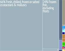 Graphical depiction of Falkland Islands's product exports in 28 color-coded categories.