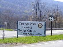 Tower City is a borough in Schuylkill County, Pennsylvania, United States. The population was 1,396 at the 2000 census.