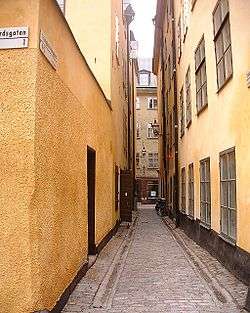 - ↑ "Innerstaden: Gamla stan". Stockholms gatunamn (2nd ed.). Stockholm: Kommittén för Stockholmsforskning. 1992. pp. 77–78. ISBN 91-7031-042-4.