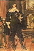 Charles X Gustav had meanwhile conquered nearly all of Poland and exiled the Polish king John II Casimir Vasa.[1] From occupied Cracow, he turned northwards in October[5] to subdue Royal Prussia, where he intended to establish a Swedish province.[4] By December, all of Royal Prussia was occupied by Sweden[4] except for Danzig (Gdańsk), which resisted throughout the war, and Marienburg (Malbork), which only fell in March 1656.[1] Thorn (Toruń) and Elbing (Elbląg) had not participated in the alliance of Rinsk and surrendered to Sweden already in November.[1] Now Charles X Gustav turned eastwards and marched his troops into Ducal Prussia, following the withdrawing army of Frederick William I.[4] While field marshal Count Georg Friedrich von Waldeck urged the "Great Elector" to confront the Swedish forces, the latter chose not to fight and accept the Swedish terms in January.[6]