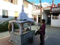 The Sri Trilokinath ji Temple is in a village of same name 6 km south of the left bank of the Chaṅdrābhāgā or Chenab River, and about 9 km from the village of Udaipur, in the Lahul and Spiti District of Himachal Pradesh, India. It is sacred to both Tibetan Buddhists and Hindus. The glittering white-painted temple is situated on a cliff at the end of a village street. Its altitude is 2,760 metres (9,055 ft).[1]