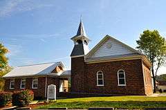 Trinity United Methodist Church is a historic Methodist church building located near Ellett, Montgomery County, Virginia. It was built between 1908 and 1910, and is a one-story, four-bay, nave plan brick structure. It has a two-stage corner tower, containing a vestibule at the northwest corner. The second stage of the tower takes the form of an open belfry with sawn brackets supporting a conical cap with finial. A Sunday school wing added in 1961.[3]