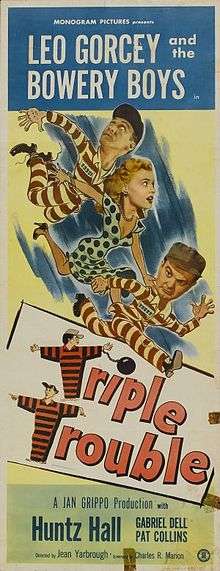 Triple Trouble is a 1950 comedy film starring The Bowery Boys. The film was released on August 13, 1950 by Monogram Pictures and is the nineteenth film in the series.