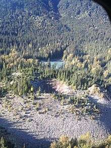 The Tseax Cone was the source for a major lava flow eruption between 1668 and 1714 that travelled into the Tseax River, damming it and forming Lava Lake. The flow subsequently travelled 11 km (7 mi) north to the Nass River, where it filled the flat valley floor for an additional 10 km (6 mi), making the entire lava flow approximately 22.5 km (14 mi) long.[3]