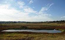 A variety of people-oriented amenities are spread outdoors across the part of the refuge open to the public. One feature is an outdoor deck overhanging an embank that overlooks ponds at the refuge.[15] This 50-foot (15 m) long concrete deck is of a cantilevered design that extends 30 feet (9.1 m) over the embankment.[15] Other amenities include footbridges, education sites, and walking trails.[15][17] There are nearly five miles (8.0 km) of trails, but they are closed in the fall and winter.[29] Centennial and River are two of the viewing areas along the trails, each offering a place to view wildlife.[21] Photographers have access to blinds which allow them to take pictures without disturbing the wildlife.[30]