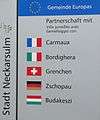 Sign denoting twin towns of Neckarsulm and Baden-Württemberg, Germany