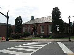 The Belmont City Hall, also known as the Former United States Post Office, is a historic post office building located in Belmont, Gaston County, North Carolina. It was designed by the Treasury Department's Office of the Supervising Architect under the direction of Louis A. Simon, and built in 1939. It is a one-story, five bay Colonial Revival style brick building. At the rear is a stepped-back rectangular secondary block and loading dock. It housed the Belmont post office until 1970, then was converted for use as the Belmont City Hall in 1973.[2]