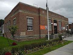 US Post Office-Watkins Glen is a historic post office building located at Watkins Glen in Schuyler County, New York. It was designed and built in 1934-1935 and is one of a number of post offices in New York State designed by the Office of the Supervising Architect of the Treasury Department, Louis A. Simon. It is a small, one story, five bay steel frame, red brick clad building executed in the Colonial Revival style.[2]