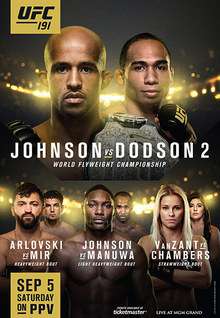 UFC 191: Johnson vs. Dodson 2 was a mixed martial arts event held on September 5, 2015 at the MGM Grand Garden Arena in Las Vegas, Nevada.[3]