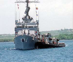 ![]() Houma (YTB-811) assists USS Talbot (DEG-4) into her berth at Naval Station, Roosevelt Roads, Puerto Rico, 14 June 1984. | |