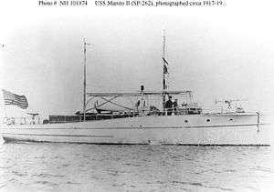 - Department of the Navy: Navy History and Heritage Command: Online Library of Selected Images: U.S. Navy Ships: USS Manito II (SP-262), 1917-1920. Previously civilian motor yacht Manito II (1912)