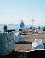 Arab terrorists in Beirut, Lebanon, kidnapped and hung Lt. Col. William R. Higgins, USMC, a member of the UN peacekeeping forces in Lebanon, and threatened to murder additional hostages they held (1 August 1989). Aircraft carrier America departed early from a visit to Singapore and made for the Arabian Sea, and Coral Sea steamed from Alexandria, Egypt, to the Eastern Mediterranean as a show of force. Mississippi had deployed as part of the Sixth Fleet’s Med 3-89 Battle Force and was visiting Haifa, Israel, when the crisis began. She emergency sortied and operated as the battle group’s Composite Warfare Coordinator for anti-surface warfare off the Lebanese littoral throughout the remainder of the month. Midway had originally been scheduled to participate in Pacific Exercise-89, but sailed to fill a carrier commitment in the Indian Ocean, where she operated until mid-October.[1]