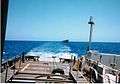 A BGM-109 Tomahawk Land-Attack Missile (TLAM) is launched toward a target in Iraq from the port side Mark 143 Armored Box Launcher (ABL) on the stern of the nuclear-powered guided missile cruiser USS Mississippi (CGN-40) during Operation Desert Storm.