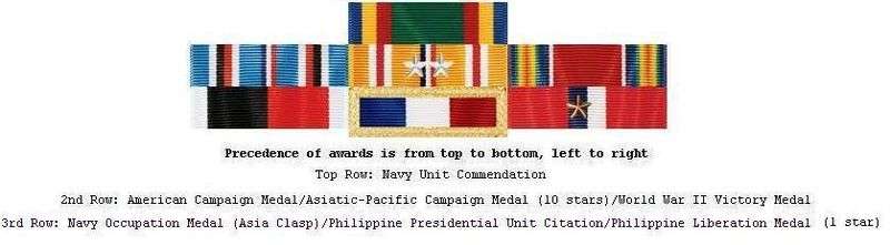 For her service Tennessee was awarded 10 Service stars and the following ribbons/awards.