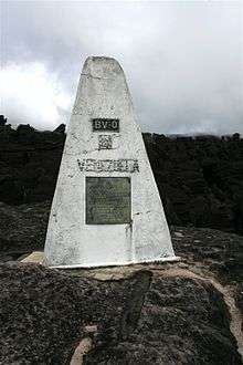 Marker on the Brasil-Venezuela-Guiana border, Monte Guyana | |||