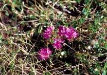 - Pink family (Caryophyllaceae) - Arctic bladder campion (Melandrium affine), knotted pearlwort (Sagina nodosa), moss campion (Silene acaulis), mouse-ear chickweed (Cerastium alpinum), purple bladder campion (Melandrium apetalum), seabeach sandwort (Honckenya peploides), star chickweed (Stellaria longipes)