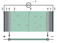 - Double-layer capacitance, electrostatic storage of the electrical energy achieved by separation of charge in a Helmholtz double layer.[19]