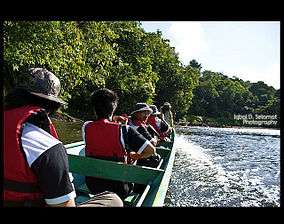 The park, which can only be reached by river, is only accessed by longboats[9] from Brunei's capital city of Bandar Seri Begawan. The first destination by boat is Bangar town where the Limbang River emerges from Sarawak and drains into Brunei Bay with mangrove muddy deltas at the estuary. Travel from Bangar town to Batang Duri is by road and it is the starting destination for travel by longboats along the Temburong River into the Park. The boats are plied by experienced Iban people winding through sand bars, logs and boulders. An extensive network of boardwalks, bridges and stairways, 7 kilometres (4.3 mi) in length,[9] have been constructed to visit all regions of the park. Interpretation boards provide information along the way.[9] There is also a canopy viewing walkway. This walkway, built with steel towers supporting the cable way, rises to height of 50 metres (160 ft) above the forest floor overlooking the highest tree canopy and provides vistas of the forests.[6]