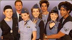 ![]() Cast of Une grenade avec ça?. From left to right: Tché, Danny, Anais, Sonia, Darius, Ève and Pat. (2007) | |