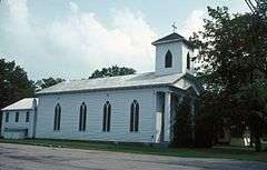 United Methodist Church is a historic United Methodist church located at Morristown in St. Lawrence County, New York. The church was built about 1838 and is a rectangular, 1 1⁄2-story frame structure with a gable roof. The interior features pressed tin walls and ceiling.[2]