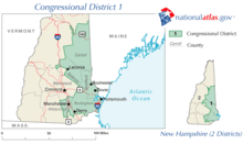 This district consists of the western and northern portions of the state, including all of Cheshire, Coos, Grafton, and Sullivan counties as well as almost all of Merrimack and Hillsborough counties plus three towns in Rockingham County and two towns in Belknap County.