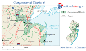 Republican Mike Ferguson barely won his re-election bid in 2006, edging state Assemblywoman Linda Stender by 50% to 48%. In a major surprise, Ferguson announced that he would not run for reelection.[7] George W. Bush narrowly won this district with 53% to 46% for John Kerry in 2004 (CPVI=R+1).