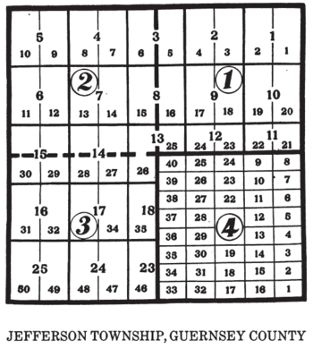 On March 3, 1803, the unclaimed land was divided into one mile (1.6 km) square sections and into half sections, and sold as essentially Congress Lands by the Chillicothe and Zanesville land offices.[9][10]