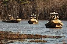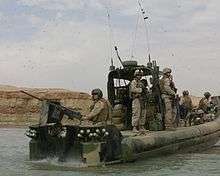 Following several months of training in combat skills, SURC operations, and cultural and language skills, RIVRON 1 Advance Party deployed to Iraq on February 13, 2007, followed by RIVRON 1 Main Body deployed March 8. RIVRON 1 conducted integrated maritime combat operations with Marines, Soldiers, Coalition Forces, Iraqi Army, and Iraqi Police.[4][5] RIVRON 1 assumed patrol duties around Haditha Dam from the Marine Corps, who had previously been performing this task.[6] On 1 August 2012, RIVRON 1 was decommissioned. It was replaced by Coastal Riverine Squadron (CORIVRON) 4, which combined RIVRON 1 with Marine Expeditionary Security Squadron (MSRON) 4.[7] This reorganization combined navy small boat units to provide both offensive and defensive force protection.[7]