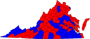 | U.S. Senate election results map. Red denotes counties/districts won by Trible. Blue denotes those won by Davis. | |||||||||||||||||||||||||||