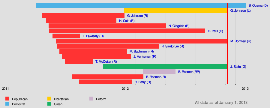 - December 19— Newt Gingrich narrowly wins Tea Party Patriots straw poll over Michele Bachmann[88]
