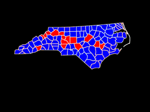 Former Georgia Gov. Jimmy Carter scored a decisive victory over Alabama Gov. George Wallace in the North Carolina Democratic presidential primary on March 23, 1976, with approximately 53 percent of the vote to Wallace's 35 percent. Sen. Scoop Jackson trailed far behind, with approximately 4 percent.[2] The North Carolina primary was the first in which Carter won an absolute majority and helped seal his ultimate nomination.[3] Wallace, who had won the North Carolina primary in 1972, was all but eliminated from the race by his defeat.[4]