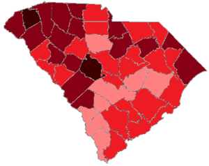 Nixon carried South Carolina with 70.58% of the vote to McGovern’s 27.92%, a victory margin of 42.66%. [1] This is the only presidential election where the Republican candidate carried every county in the state.