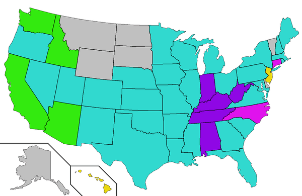Based on projections of population growth, Northeastern and Midwestern states such as Pennsylvania, New York, Rhode Island, Ohio, Michigan, Illinois, and Minnesota may lose seats, while Western and Southern states such as California, Oregon, Arizona, Colorado, Texas, Florida, North Carolina, and Virginia may gain seats.[4] The Southern states of Alabama and West Virginia may also lose seats.[4]