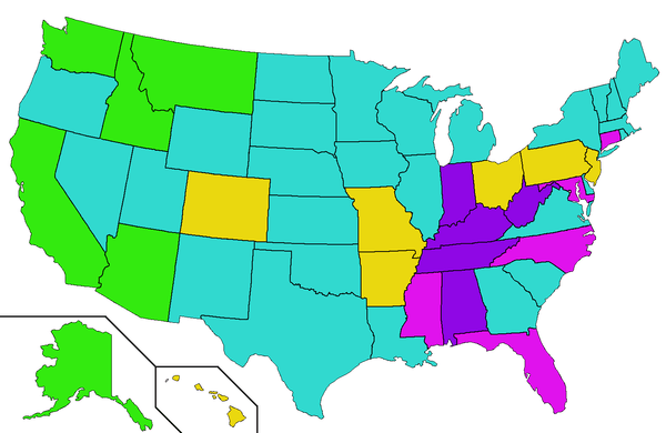 Seven states have currently only one Congressman in the House of Representatives; as none of these states are projected to gain an additional seat in the post-2020 reapportionment, they will likely not have to draw House district lines.[4] The remaining states will draw new House districts based on the number of seats apportioned to them. The United States Constitution grants state governments the power to draw Congressional districts, but the Supreme Court case of Wesberry v. Sanders established that districts within a given state must be equal in population to one another. In most states, the state legislature draws the new districts, but some states have established redistricting commissions.[9] California, Arizona, Idaho, and Washington use independent commissions to draw House districts, while Hawaii and New Jersey use "politician commissions" to draw House districts.[9] In all other states with multiple House districts, the legislature draws district lines, although some states have advisory commissions that can play a major role in drawing lines, and other states have backup commissions if the state legislature is unable to draw the lines itself.[9] Most states draw new lines by passing a law the same way any other law is passed, but some states have special procedures.[9] Connecticut and Maine require a 2/3 super-majorities in each house of the state legislature for redistricting plans, while district lines are not subject to gubernatorial veto in Connecticut and North Carolina.[9] The legislatures of Alabama, Indiana, Kentucky, Tennessee, and West Virginia can override gubernatorial vetoes with a simple majority vote,[10] giving governors in those states little leverage in the drawing of new district maps.
