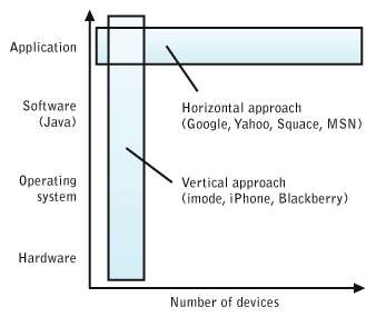 Horizontal approach: Service/browser independent of hardware, OS and operator