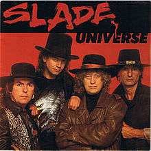 "Universe" is a single from rock band Slade which appeared on the compilation album Wall of Hits. Like the previous single "Radio Wall of Sound", it was written solely by bassist Jim Lea. The B-side for the single, "Red Hot", was written by guitarist Dave Hill with Wizzard's ex-keyboardist Bill Hunt.[1] The single was released in late 1991 for the Christmas market. Despite numerous TV performances and a promo video, the single failed to enter the top 100.[2] This became the last single under the original band as Noddy Holder effectively retired shortly after whilst bassist Jim Lea followed the same path.[3] Both guitarist Dave Hill and drummer Don Powell decided to carry their career on under the name of Slade 2.[4] In 2007, Jim Lea remade this track for his solo album Therapy.[5]