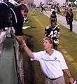 - HOT members shake hands with fellow students after halftime.