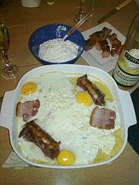 Bulz,[1] also called urs de mămăligă, is a Romanian dish composed by roasting mămăligă and cheese in an oven. Bulz is often eaten with smântână.
