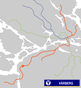 Vårberg is a station in the Stockholm metro in the neighbourhood Vårberg in Söderort, Stockholm Municipality. The station was opened in 1967, and is part of Line 13 of the Red Line.[1] The distance to Slussen is 12.6 km.