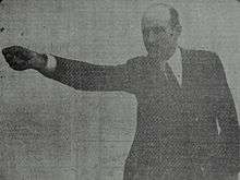 In 1922 Pradera set up Partido Social Popular,[67] intended to be a vehicle of a new, possibilist policy making.[68] Incompatible with the Carlist intransigence,[69] it was envisioned as a broad alliance rather than a party.[70] Most scholars suggest it was principally inspired by social theories of Leo XIII,[71] at that time advanced in Spain mostly by the Zaragoza school of Salvador Minguijon;[72] it was supposed to confront the rising socialist tide.[73] Though the party is occasionally described as a distant preconfiguration of Christian Democracy,[74] proto-Fascism or renewed Traditionalism,[75] most summarise its program as social-Catholicism,[76] modeled on the German Catholic Centre Party.[77] The party slogan was: Religión, Patria, Estado, Propiedad y Familia.[78] PSP opposed representation based on popular election system and advocated a corporative representation instead;[79] Pradera appreciated good will of Christian-democrats like Herrera Oria, but claimed that their malmenorismo opens the door to revolution, he also preferred monarchism to Christian-democratic accidentalism.[80] The PSP social program included progressive taxation and social legislation.[81] Though some of its leaders clearly excluded ruling by force, Pradera remained rather ambiguous on this issue.[82]