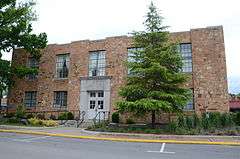 The Van Buren County Courthouse is located at the corner of Griggs and Main Streets in downtown Clinton, Arkansas, the county seat of Van Buren County. It is a two-story masonry structure, built primarily out of local stone. Its main facade is five bays wide, each flanked by broad sections that project a small amount. The main entrance is in the center bay, with a concrete surround of pilasters and a tall corniced entablature. It was built in 1934 with funding support from the federal Works Progress Administration, and was the county's third courthouse to be located in Clinton.[2]