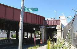 It is located at Norwood Avenue and Bay Street on the main line. It is located on an embankment with side platforms and beige canopies. The north end has exits on both platforms that lead to Bay Street. The southbound platform has winding stairs to Townsend Avenue while the northbound platform has stairs under the right-of-way to Norwood Avenue. The northbound platform also has a second staircase on Bay and Edgewater Streets, which is not present on the southbound side.