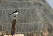 The Variable Wheatear Oenanthe picata (Muscicapidae: Passeriformes) is a bird of arid and semi-arid region, and is locally abundant in barren rocky areas, sand dunes with scrub vegetation, cultivation, ravines, outside villages and nomadic encampments.[2]