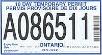 Some jurisdictions issue temporary licence plates made of cardboard or security paper or even printed on plain paper for newly purchased vehicles, for drivers waiting for plates in the mail, or other registration issues. A common length of time to have temporary plates is 30 days,[35][36] although Ontario offers ten-day permits, and some U.S. states allow temporary tags to be effective for up to 90 days.[37] Temporary licence plates are usually either attached to the vehicle in place of the rear licence plate or both licence plates or taped to the inside of the rear windshield, while some states require it to be in the front windshield. Expiration dates are usually hand written by regulatory employees or dealership sales personnel, but, due to easy alteration of hand written dates, some states now digitally print the date on the tag. If a driver continues to drive after the permit expires the vehicle can face impounding as an unplated vehicle.