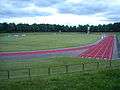 Vejlby-Risskov Idrætscenter has its headquarters in a modernist low red brick building complex, inaugurated in 1969 and designed by architectural firm Friis & Moltke. The buildings comprise a folk high school of sports (Idrætshøjskolen Århus), 4 indoor sports halls, including the sports and events arena of Vejlby-Risskov Hallen, a swimming hall and administrative offices.[2] Several sport clubs also has their headquarters at the grounds of the sports complex, but at different locations. The buildings are surrounded by a total of 10 soccer fields, several outdoor tennis courts and a stadium with a capacity for 5,000 spectators.[3] The complex covers an area of 1.5 km2 (150 hectares).[1]